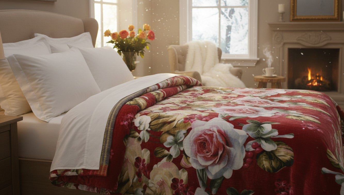 CozyWave Ultra-Soft Floral pattern Winter Blanket – Warm, Lightweight & Skin-Friendly Bed Comforter for Kids & Adults (Double Bed)